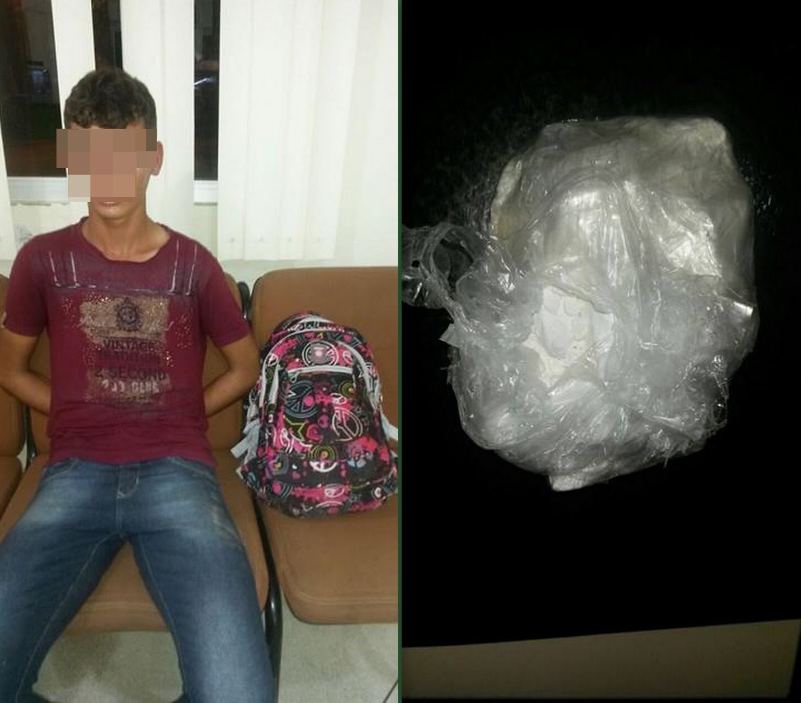 A Policia Militar de Tarauacá, apreendeu o menor M.N.L., na noite desta quinta feira, 5 de abril, por volta das 21 horas, portando meio quilo de oxidado de cocaína. A chamada pedra, que ainda seria misturada a outros produtos antes de virar pó, pronto para o consumo.